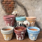 お花のレース鉢【3号鉢】(レンガ)とモルタルおうちピックのセット